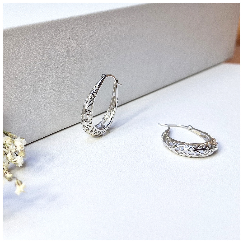 Stříbrné náušnice kruhy Muriel s antickým vzorem
