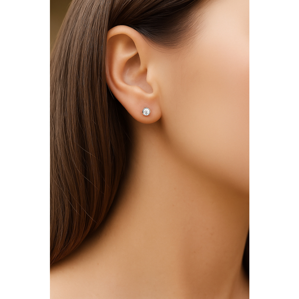 Stříbrné náušnice s rhodiovanou povrchovou úpravou ozdobené čirým kulatým zirkonem.