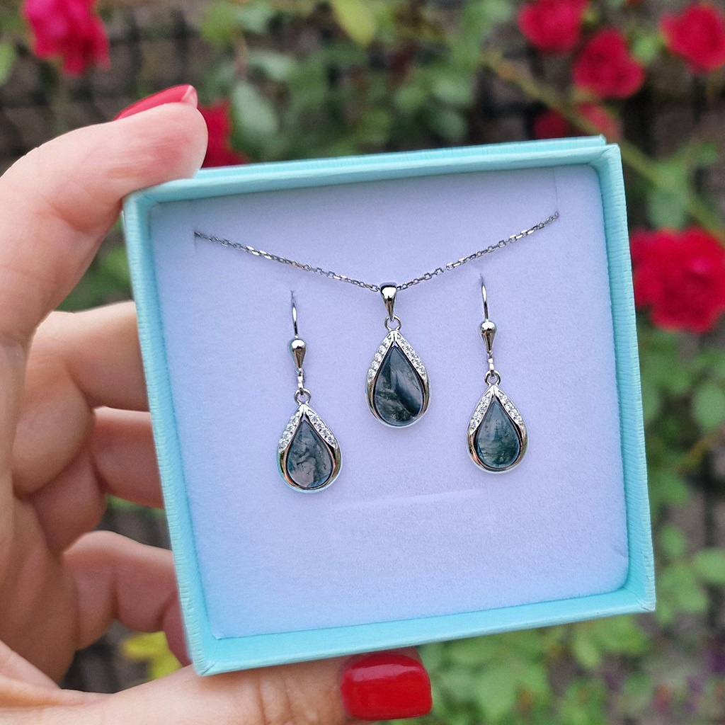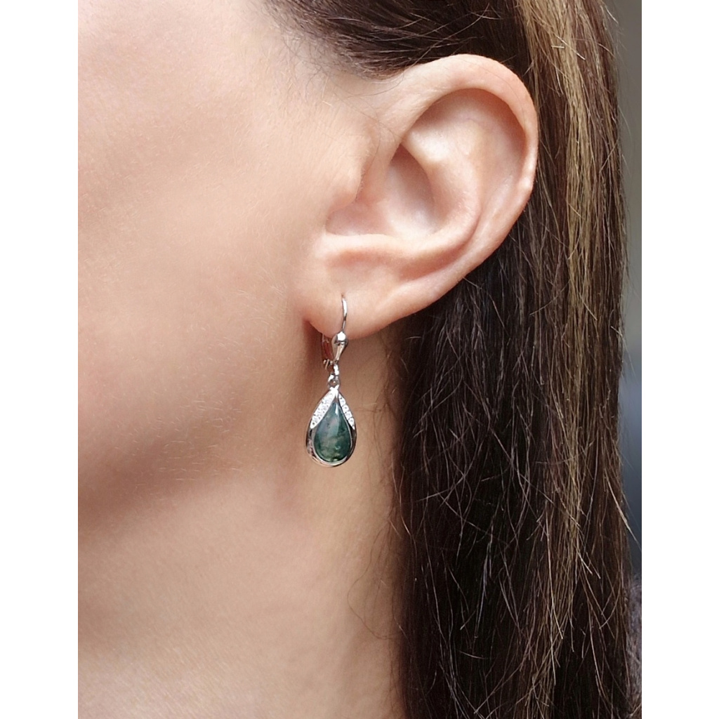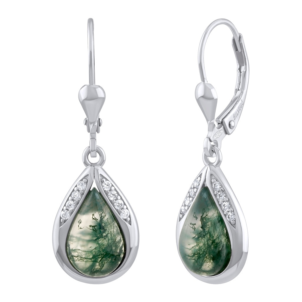 Stříbrné visací náušnice s přírodním mechovým Achátem