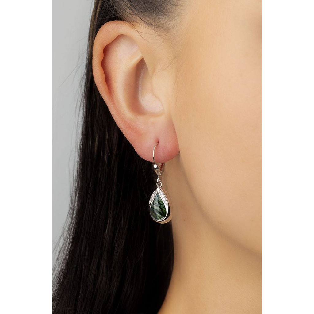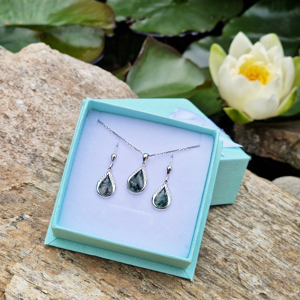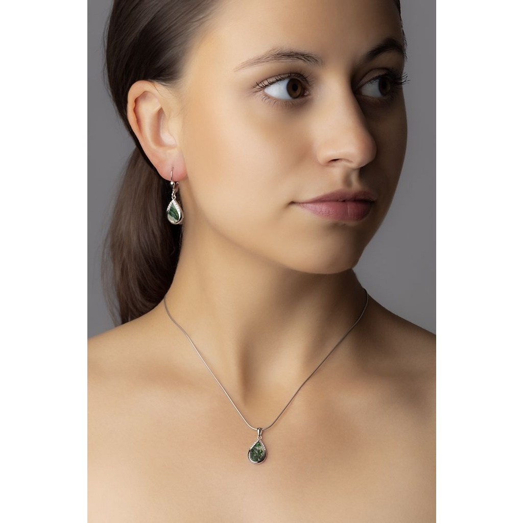 Stříbrné visací náušnice s přírodním mechovým Achátem