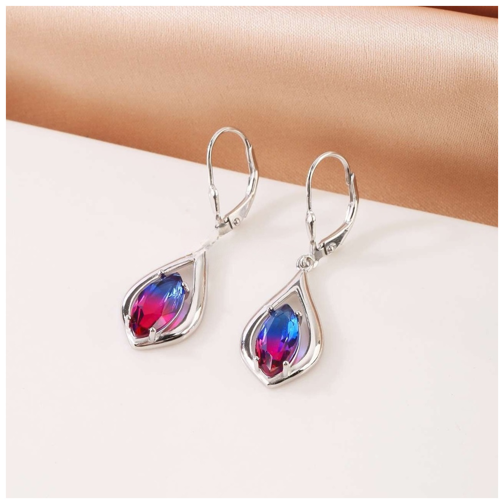 Stříbrné visací náušnice s růžovo-modrým zirkonem