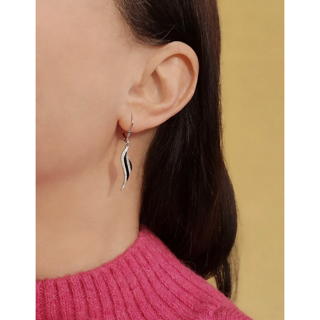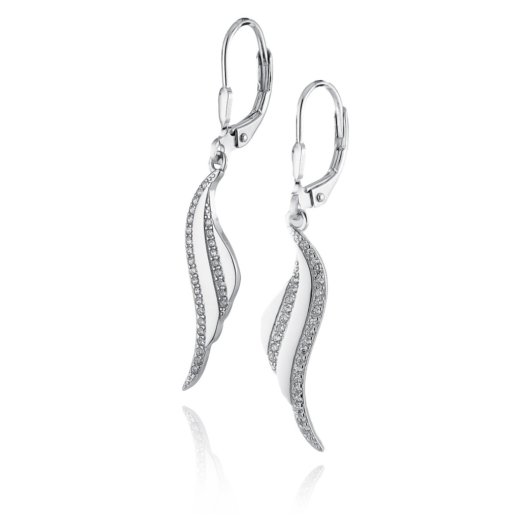 Stříbrné visací náušnice s rhodiovanou povrchovou úpravou ozdobené čirými zirkony.