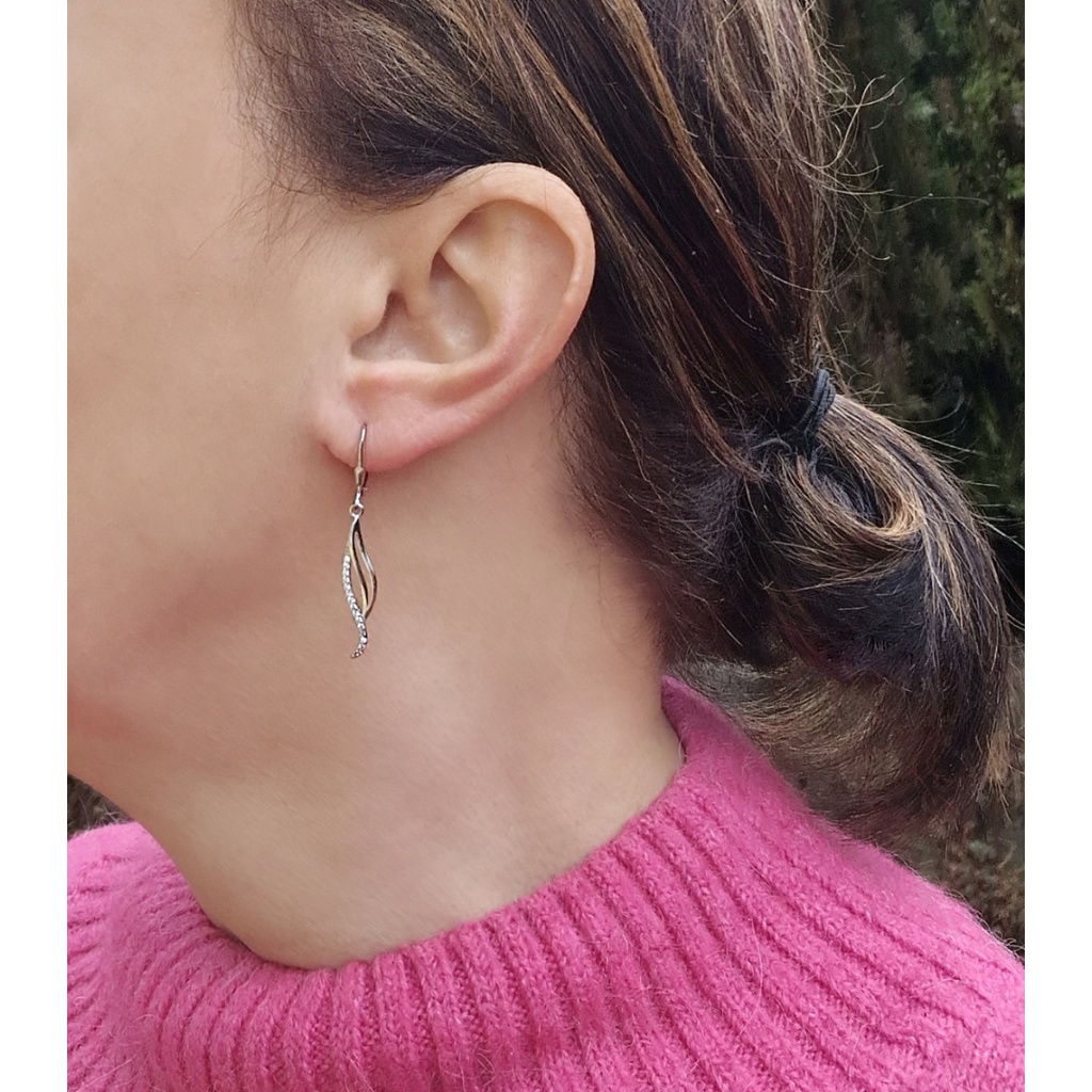 Stříbrné visací náušnice s rhodiovanou povrchovou úpravou ozdobené čirými zirkony.