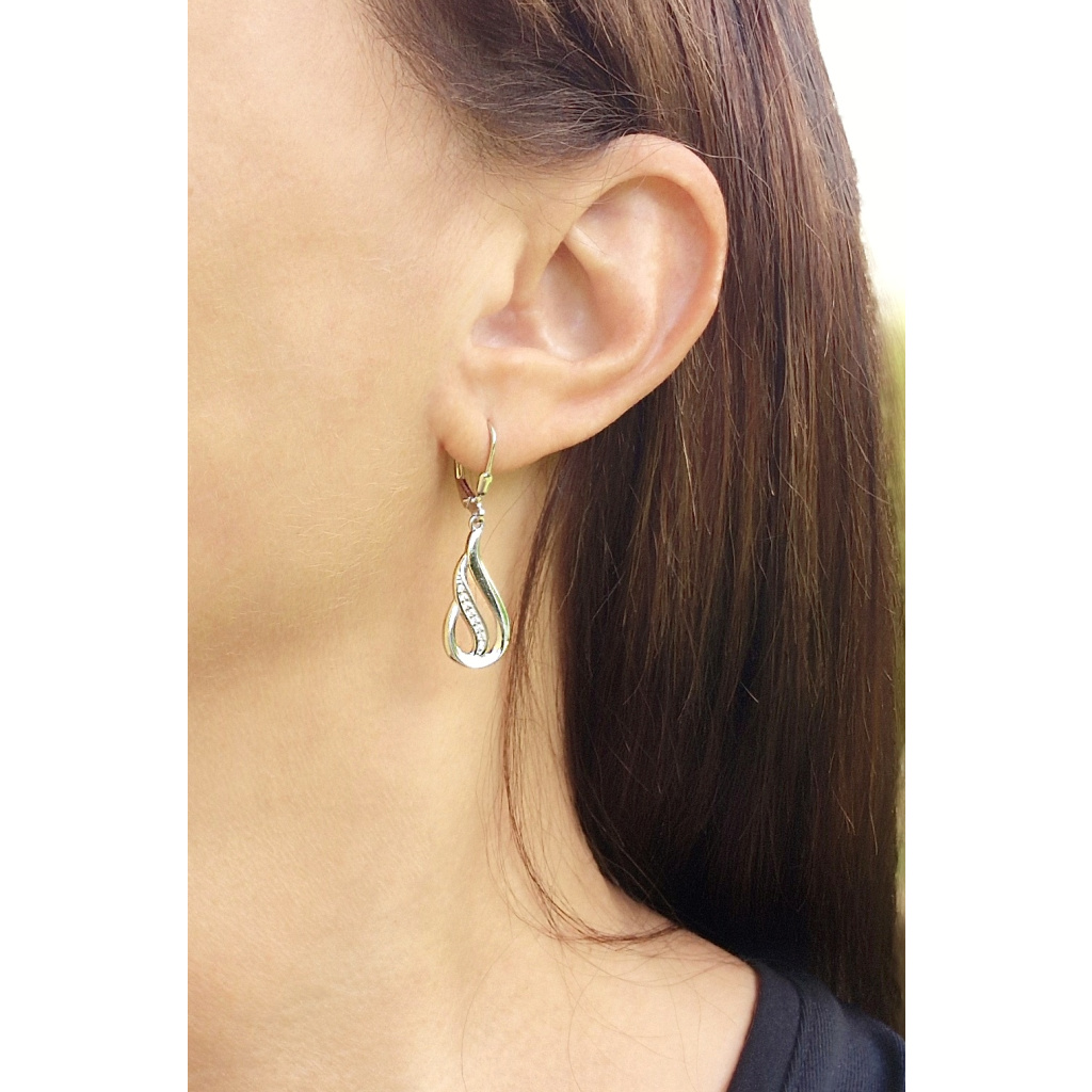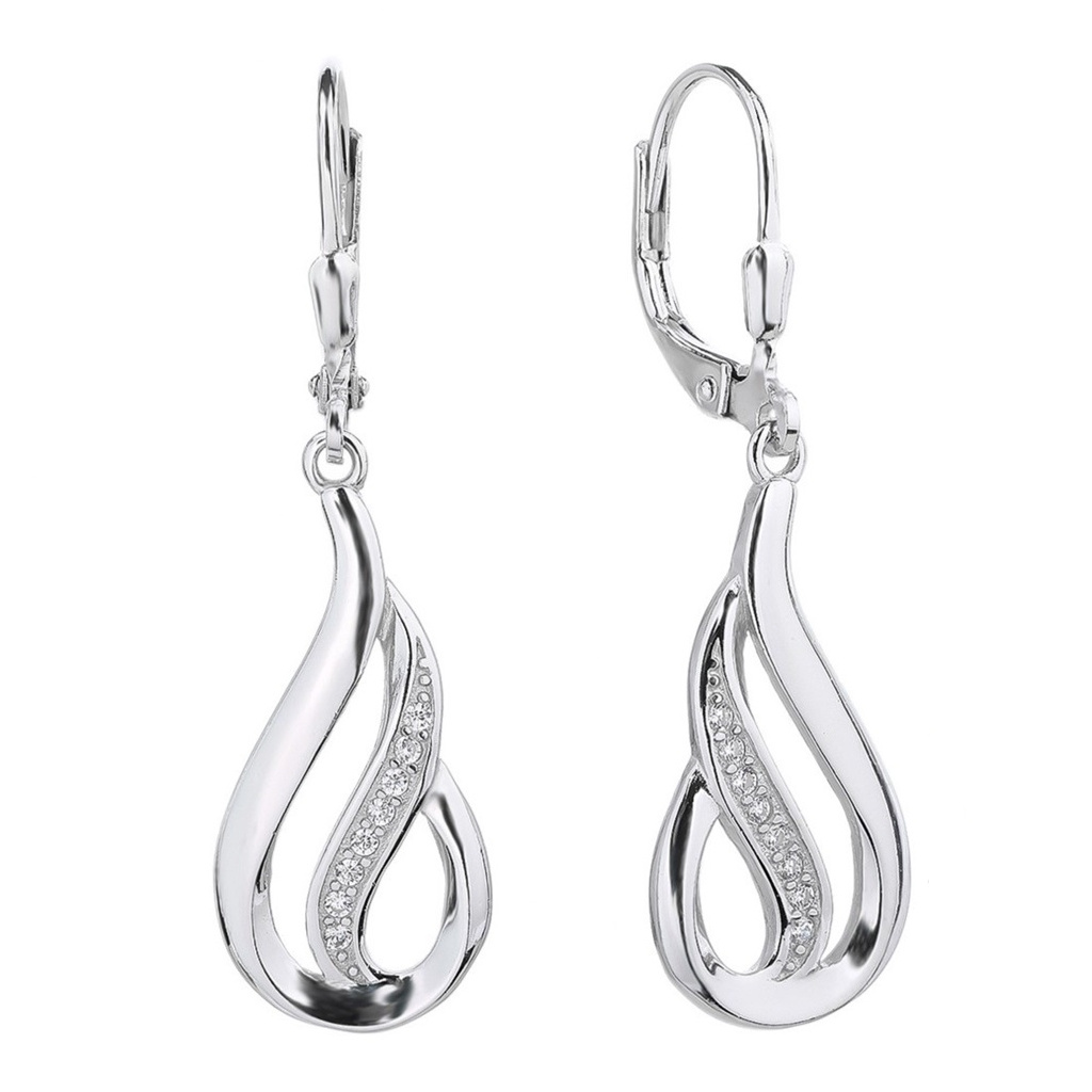 Stříbrné visací náušnice s rhodiovanou povrchovou úpravou ozdobené čirými zirkony.