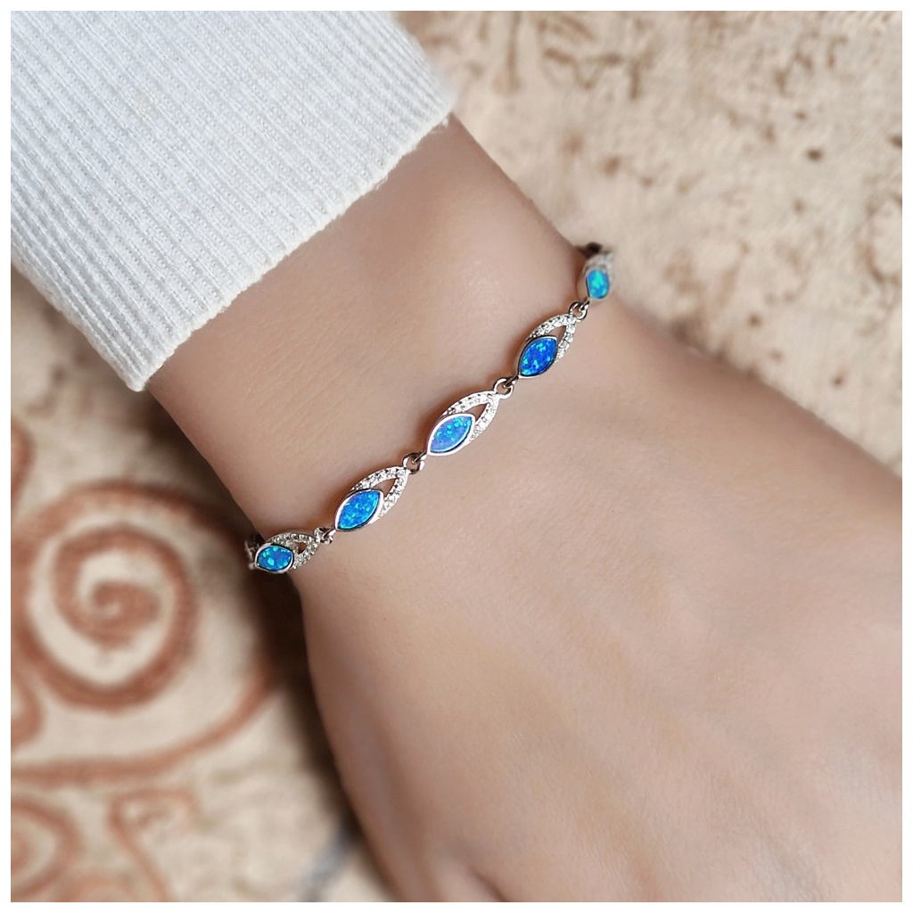 Stříbrný dámský náramek Janice s modrými opály