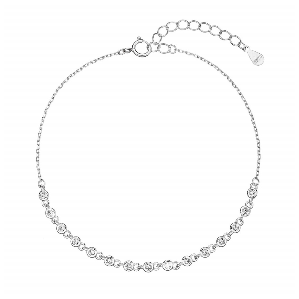 Elegantní stříbrný náramek s rhodiovanou povrchovou úpravou osazený čirými zirkony kulatého tvaru.