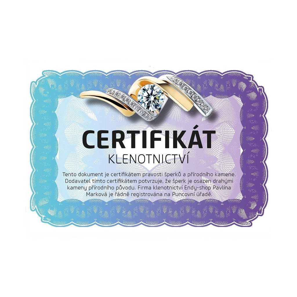 Šperk Vám dodáme v dárkové krabičce včetně certifikátu potvrzujícího pravost použitých materiálů.
