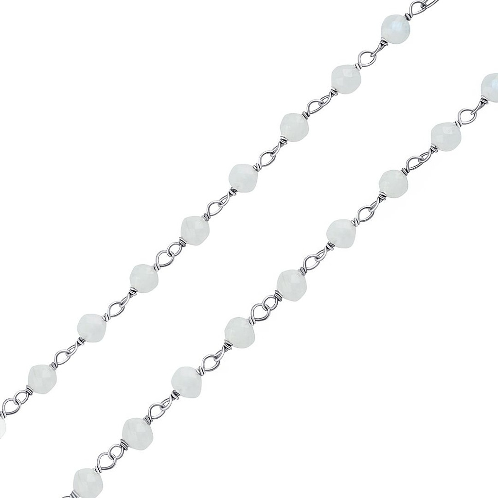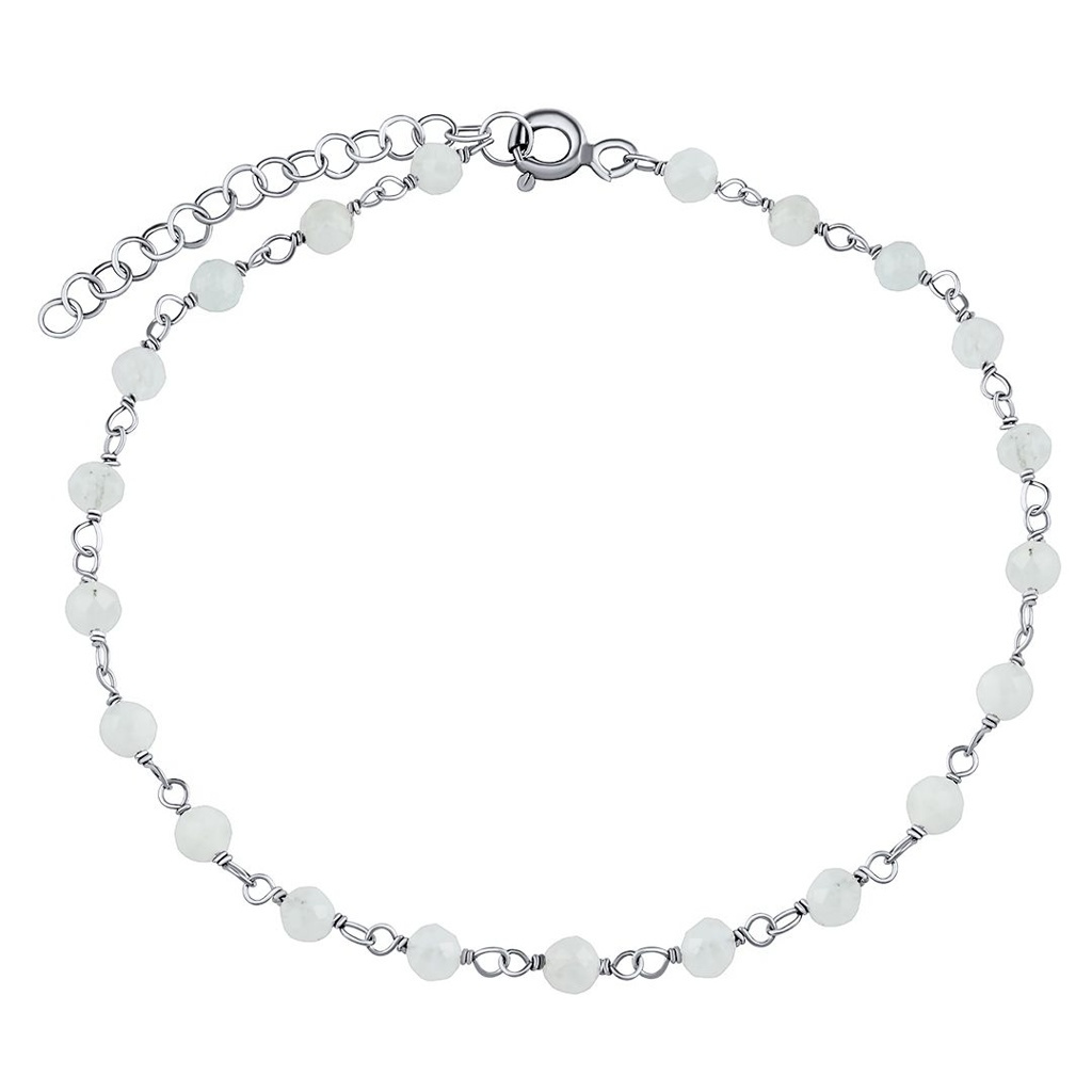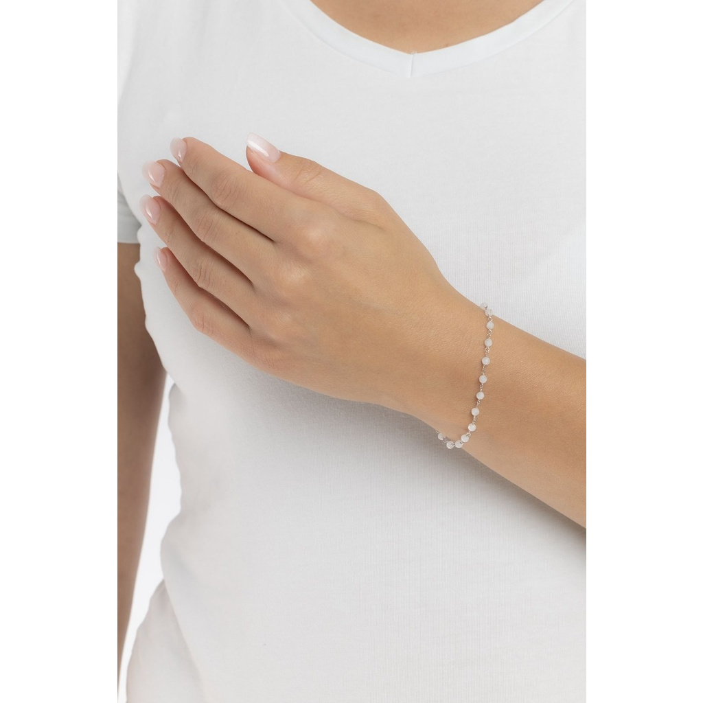 Stříbrný dámský náramek s leštěným rhodiovaným povrchem ozdobený kousky přírodního měsíčního kamene.