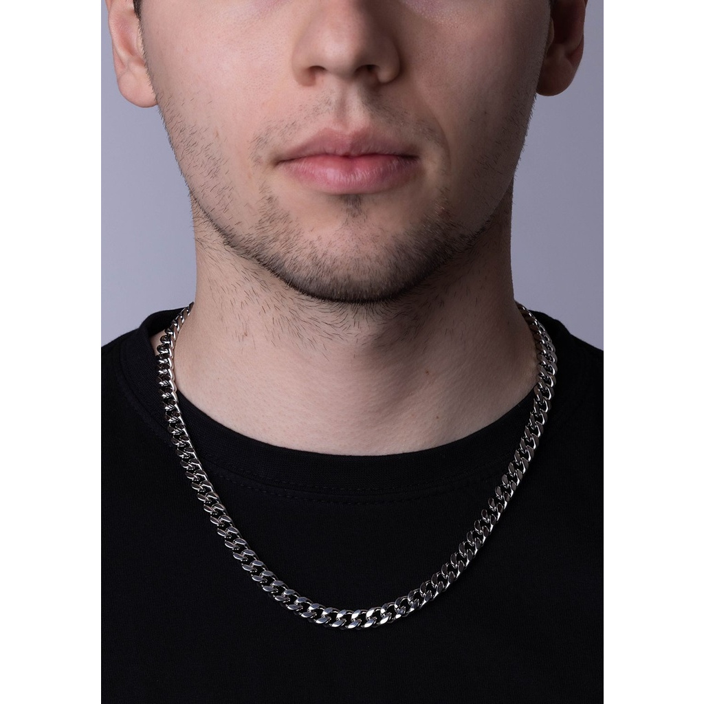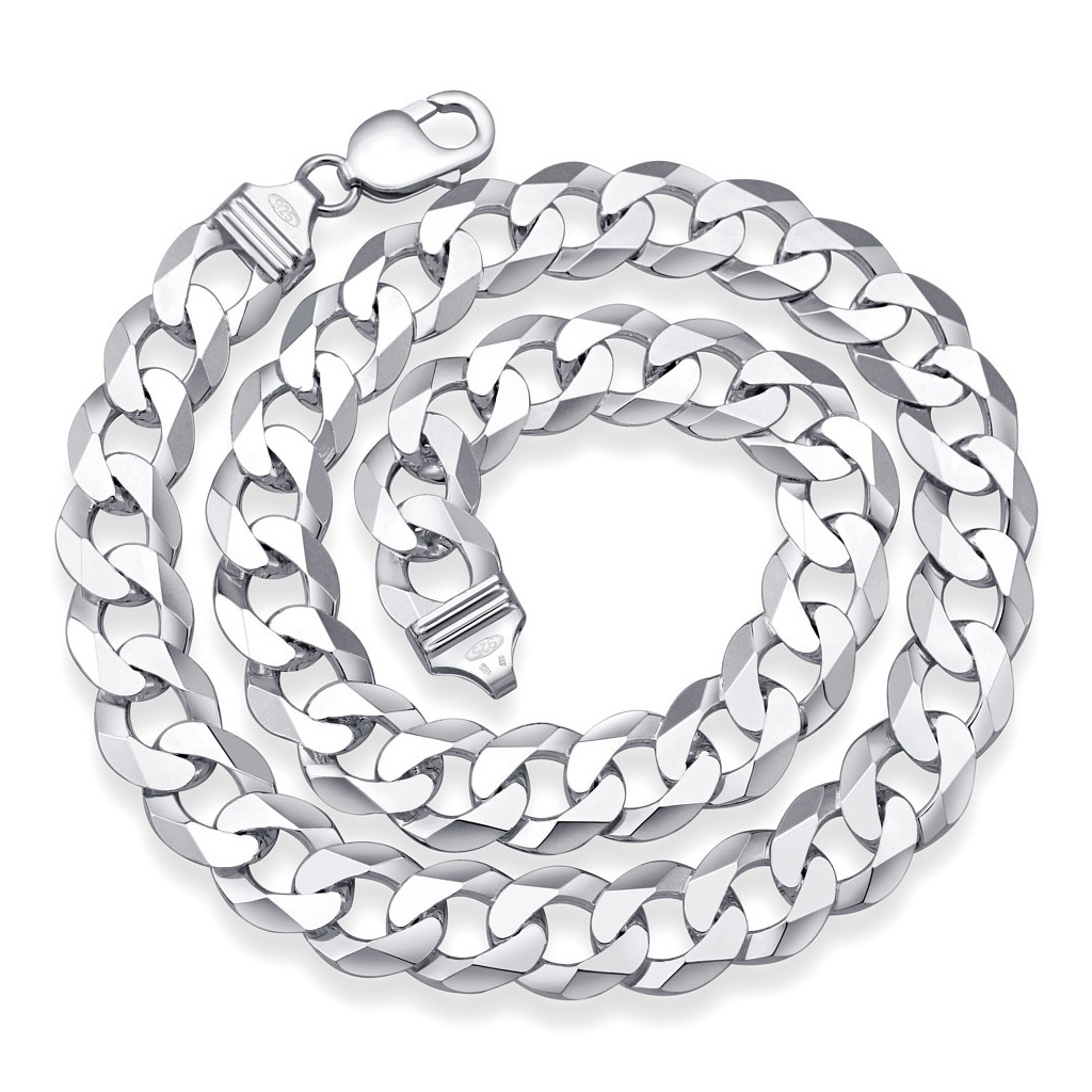 Masivní pánský stříbrný řetěz-náhrdelník typu Curb v lesklé povrchové úpravě s rhodiováním.