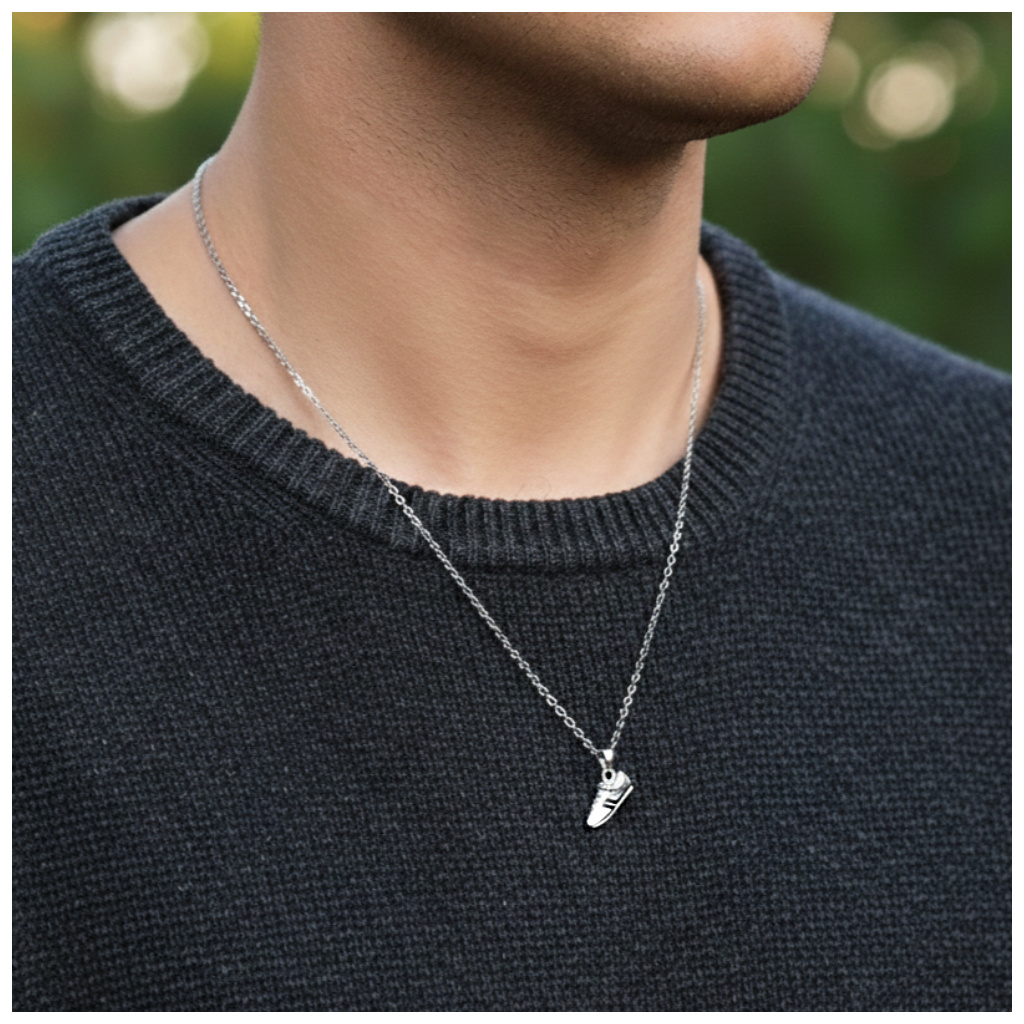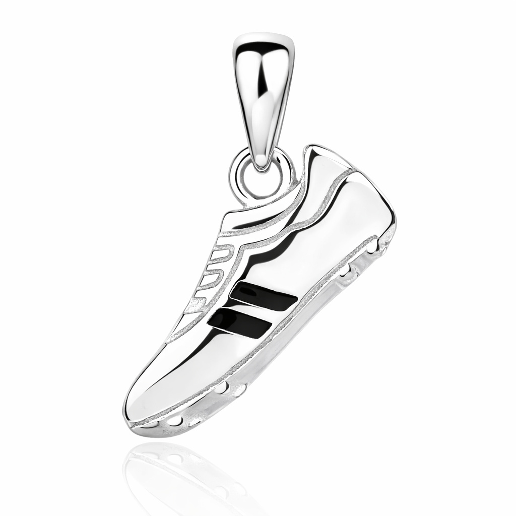 Stříbrný přívěsek s rhodiováním ve tvaru fotbalové kopačky.