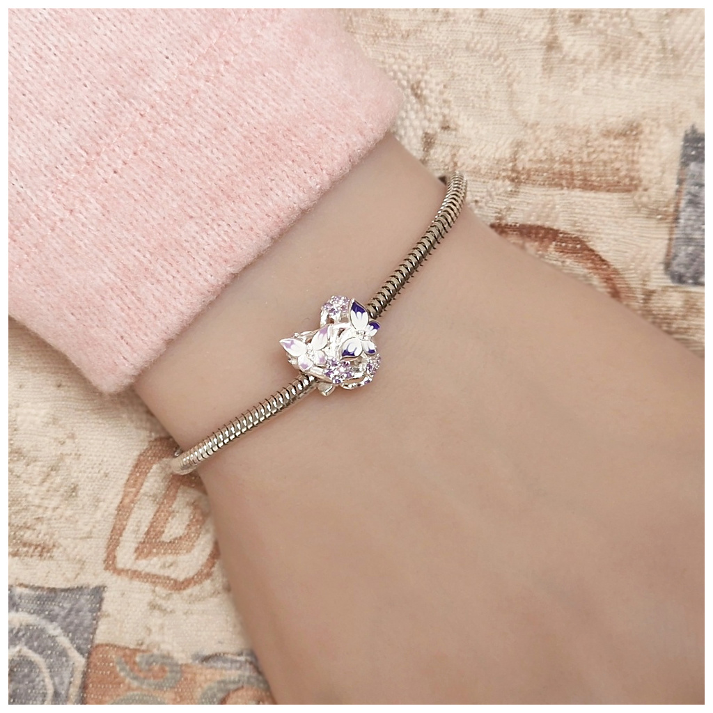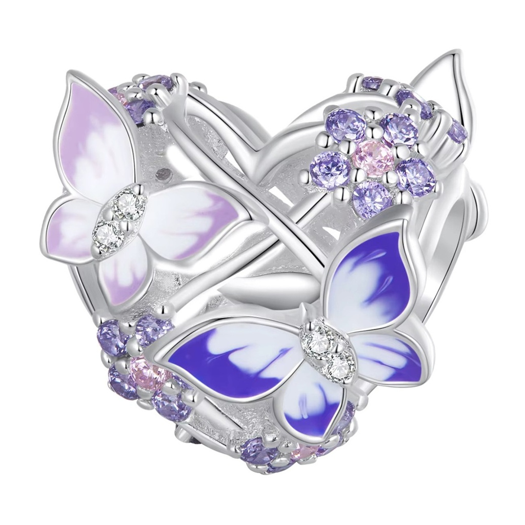 Stříbrný rhodiovaný přívěsek - korálek ozdobený motýly a květy.