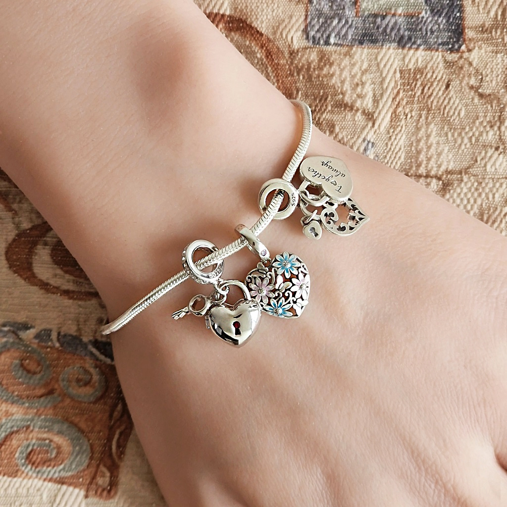 Stříbrný přívěsek korálek srdíčko s kytičkami