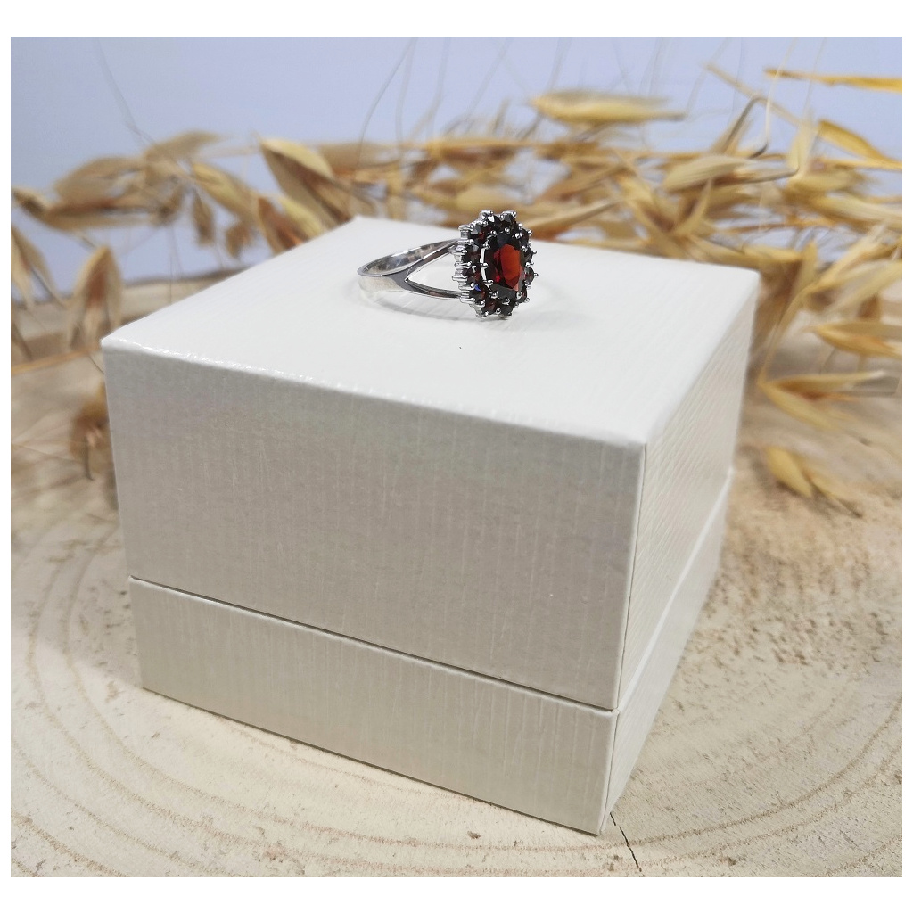 Stříbrný prsten s granátem