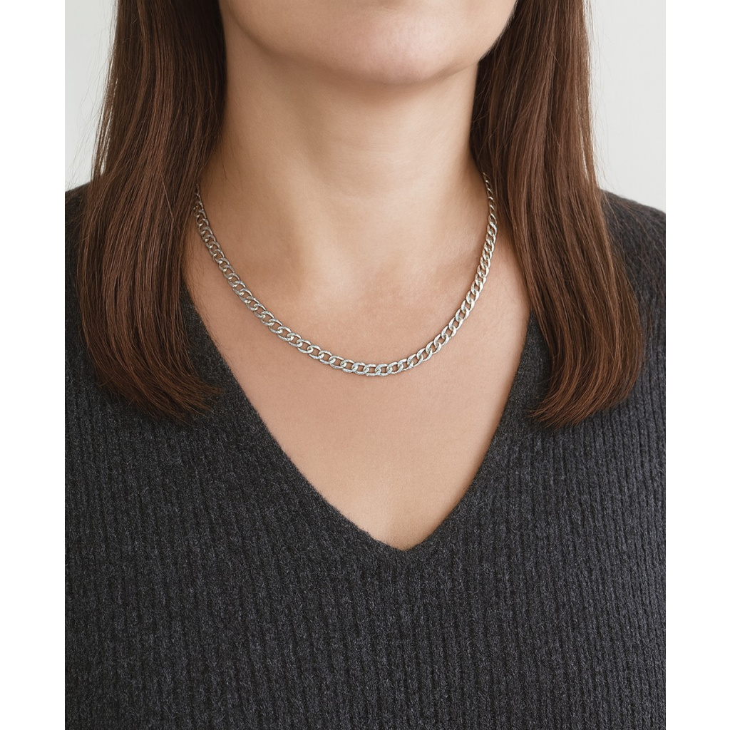 Stříbrný řetízek typu Curb v lesklé povrchové úpravě s rhodiováním.