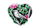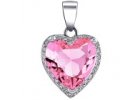 Stříbrný řetízek na nohu s leštěným rhodiovaným povrchem ozdobený přívěskem ve tvaru dvou propojených srdíček.